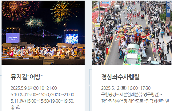 - 장소: 부산 수영구 광안리해변, 수영사적공원 일대