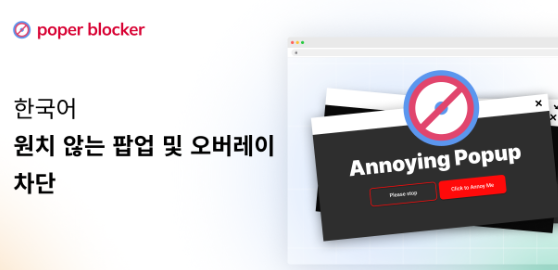 광고와 더불어 갑자기 튀어나오는 팝업창도 웹서핑을 방해하는 큰 요소인데요. Poper Blocker는 원치 않는 모든 종류의 팝업창을 자동으로 차단해주면서도, 필요한 경우 특정 팝업은 허용할 수 있는 세밀한 설정이 가능합니다.