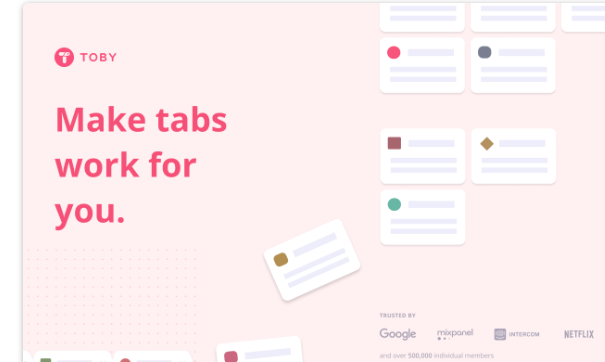 OneTab보다 더 시각적이고 직관적인 탭 관리를 원하신다면 Toby를 추천합니다. 이 프로그램은 열려 있는 탭들을 보드 형태로 깔끔하게 그룹화해 프로젝트별로 정리하고 불러올 수 있게 해주는 탭 관리 도구입니다.