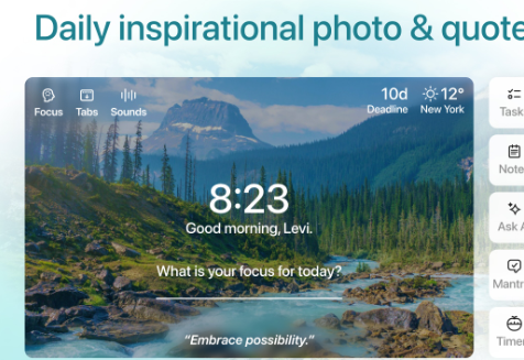 매일 새로운 고품질 배경 이미지와 인용구가 제공되어 기분을 좋게 해주고, 할 일 목록 관리 기능과 통합된 검색 기능으로 생산성까지 높여줍니다. 무료 버전만으로도 충분히 유용하지만, 더 많은 기능을 원한다면 프리미엄 버전을 선택할 수도 있어요.