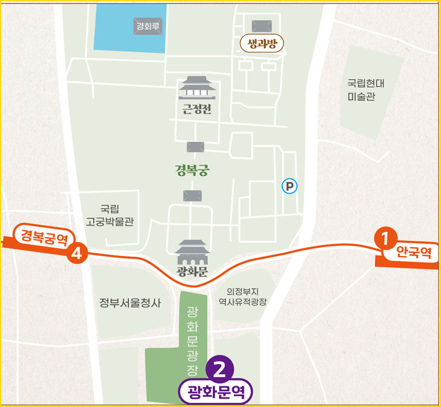 - 지하철: 경복궁역 5번 출구, 광화문역 2번 출구